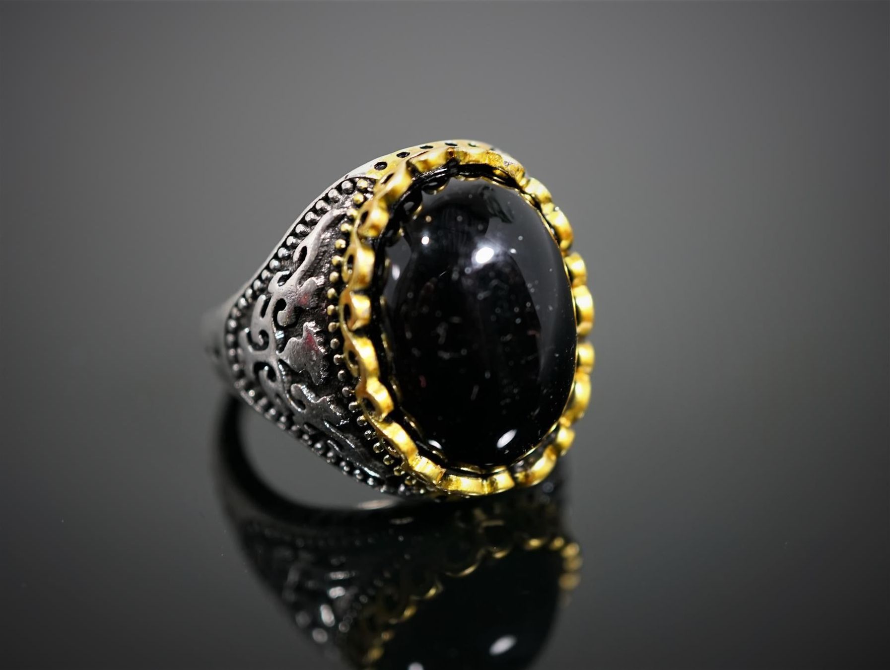 Herrenring 925 Sterlingsilber Mit Schwarzem Ovalen Onyx Stein